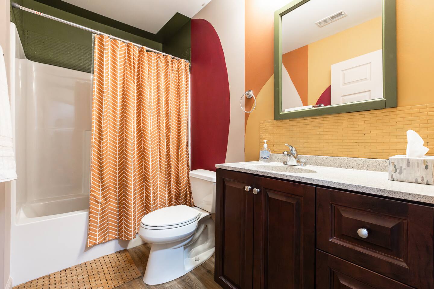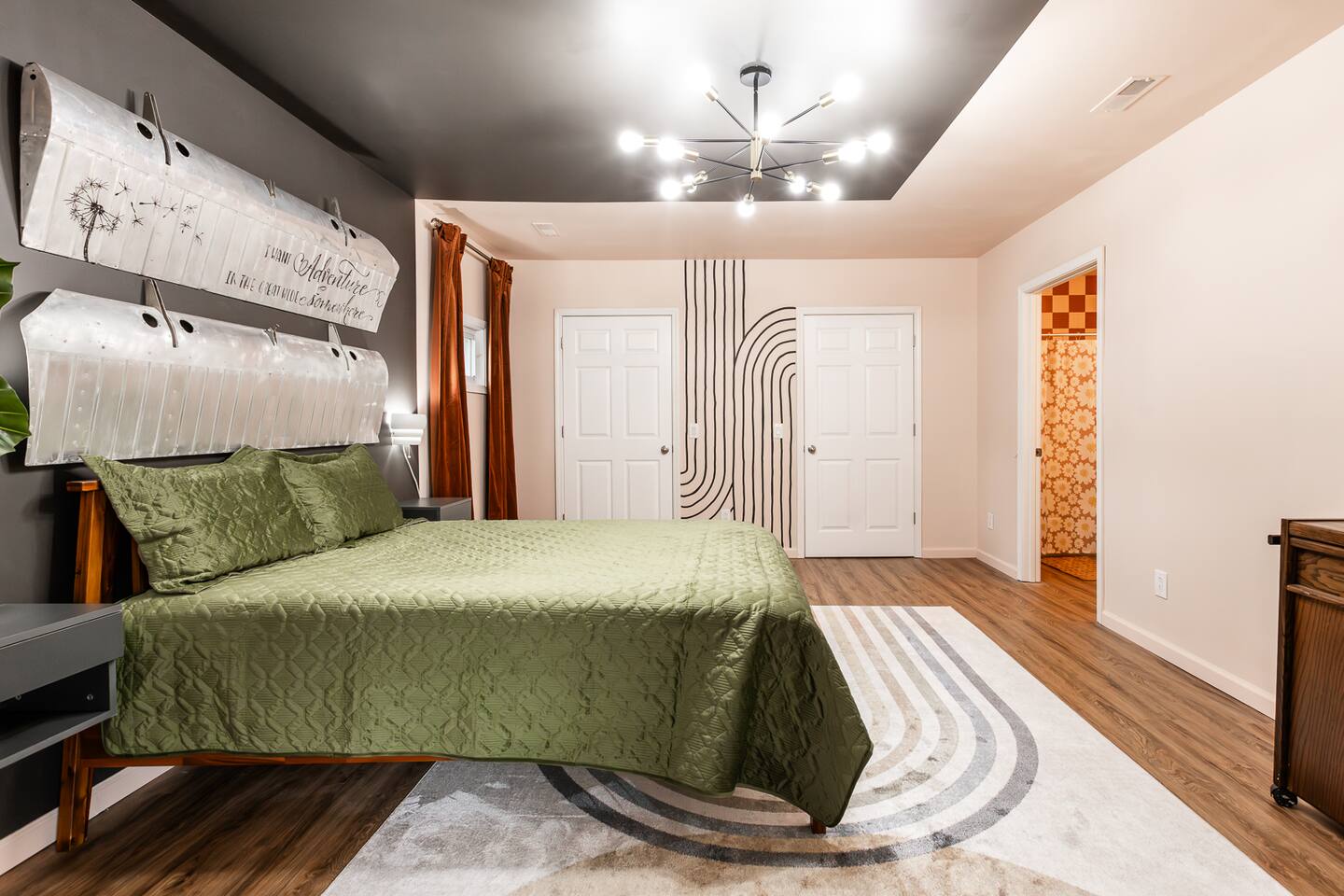 It is designed with all new amenities, incl wash/dry. Built for travelers, this space has a 70's airline vibe & room for a family or couple healthcare workers in the Metro East. Only 3min to the new Shiloh Memorial Hospital, 17min to Belleville Memorial, & 7min to Saint E's. The Scott Air Force Base front gate is a 6 min car ride. An easy 20min drive to Busch Stadium in downtown STL. Fast WiFi & Netflix on TV for streaming! Come stay!