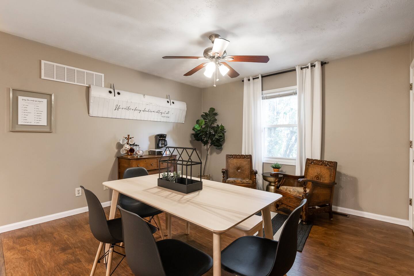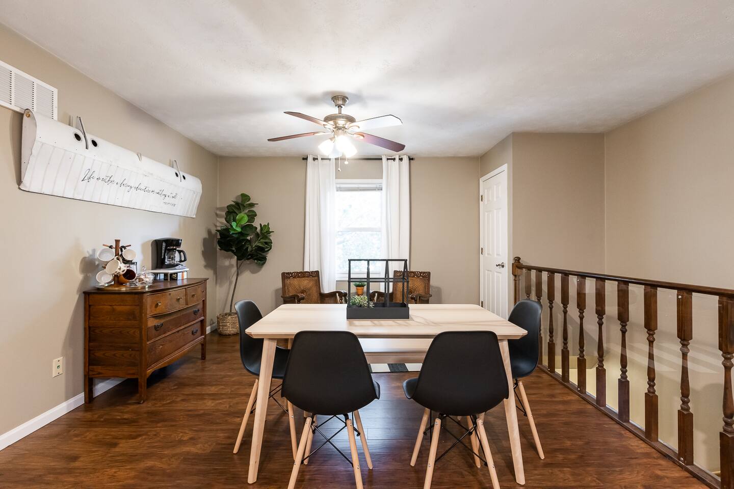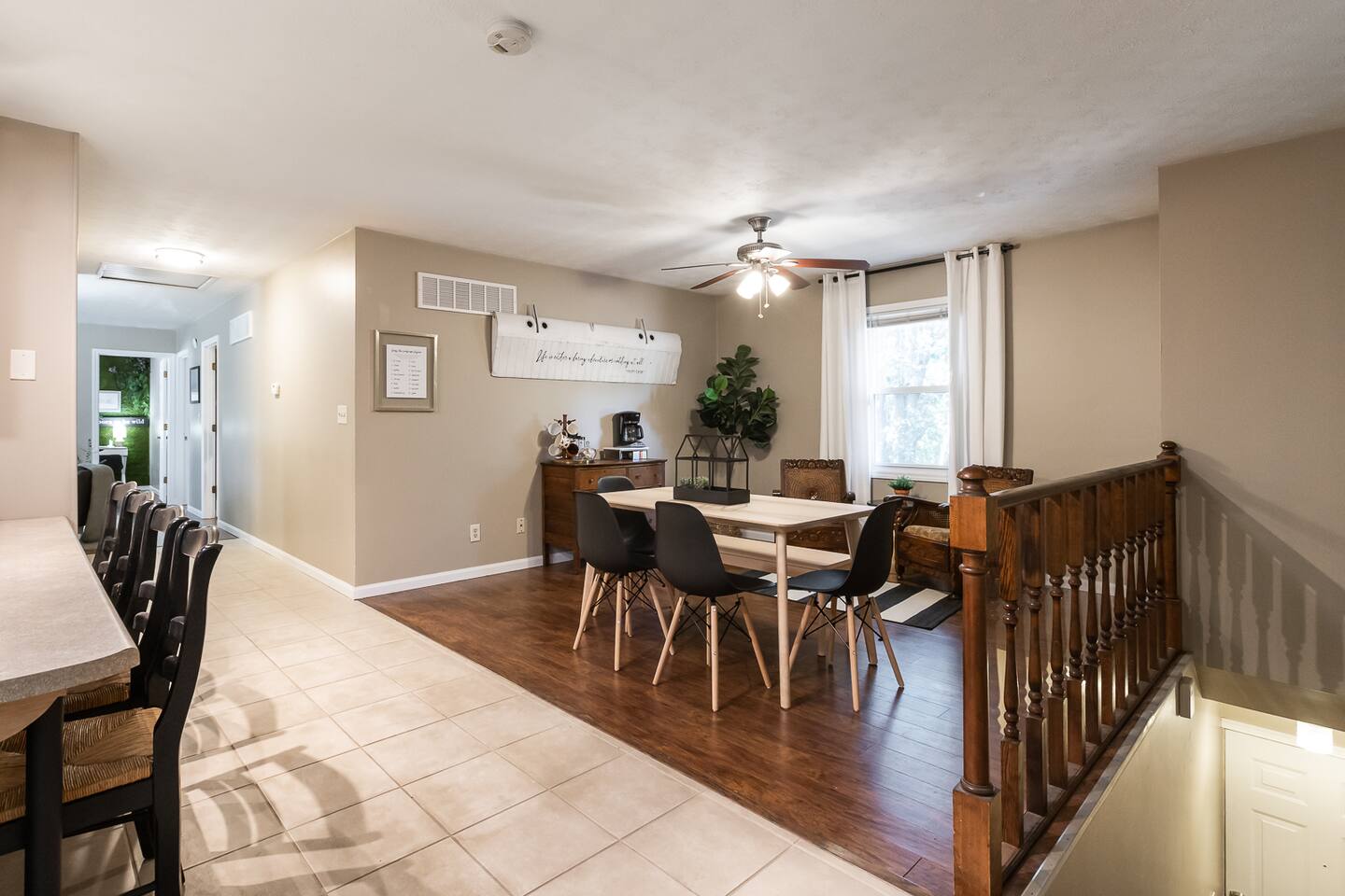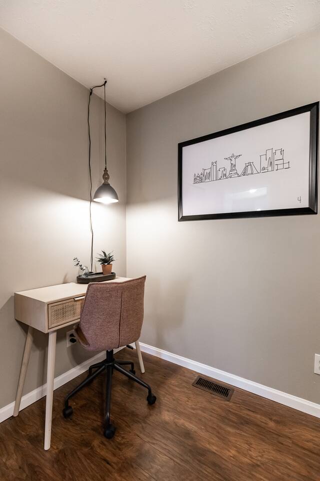 Skyline is a newly designed 3 bed/1 bath apartment in the heart of Shiloh, IL. It is perfect for families visiting or PCS'ing to the Scott AFB/Metro East area. With a full-size kitchen, dining room, and living space, it feels very homey. Skyline has a private entrance that leads up one flight of stairs (2nd story). There are 2 AirBnBs below, but Skyline is alone on the 2nd story. Washer/dryer included, PLUS Netflix and a Roku Smart TV to stream your favorite shows. Can't wait to host you soon!